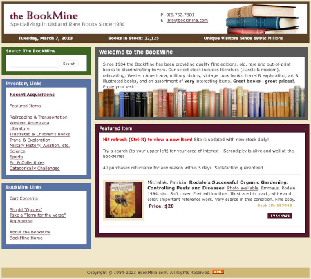 The BookMine is a rare and collectable book dealer. This project consists of an online database and shopping cart for sales.