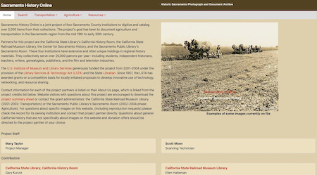 Sacramento History Online is a joint project of four Sacramento County institutions to digitize and catalog over 2,000 items from their collections. The project’s goal has been to document agriculture and transportation in the Sacramento region from the mid 19th to early 20th century.